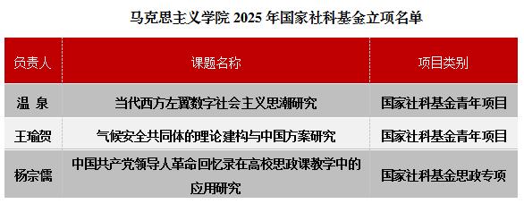 科研是教学的必要支撑。学院在近两年获批4项国家社科基金的基础上,2025年再次获得3项国家社科基金,数量为历年新高。其中,温泉、王瑜贺两位老师获批国家社科基金青年项目,杨宗儒老师获批国家社科基金高校思想政治理论课研究专项。此外,学院教师还获批多项省部级课题,冯雷老师获批北京市社科基金重点项目,张晓晨老师获批北京市社科基金一般项目,温泉老师获批北京市习近平新时代中国特色社会主义思想研究中心年度项目,宋天博老师获批国家民委民族研究项目。这些成果,集中展现了学院年度科研工作的活跃态势与扎实进展。